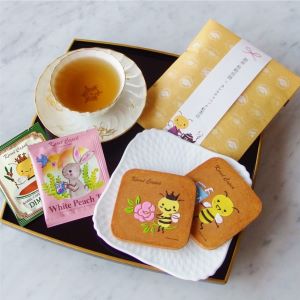 瓦煎餅の絵柄と紅茶の味が異なる2種類のセットを販売いたします。是非ご利用ください。