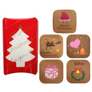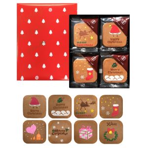 クリスマスの絵柄が描かれた可愛らしい瓦煎餅を、専用の包装紙や化粧箱でお包みしております。