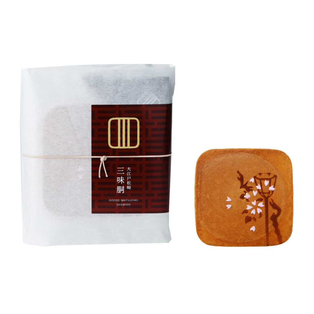 三味線の胴の形に似ていることからその名が付けられた、松﨑を代表する瓦煎餅「大江戸松﨑 三味胴」。