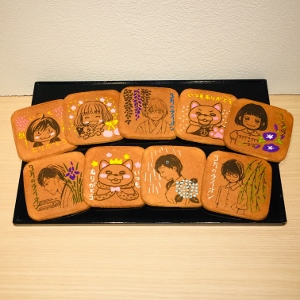 限定パッケージのお箱と、全9種類の絵柄入り瓦煎餅をお楽しみいただけます。