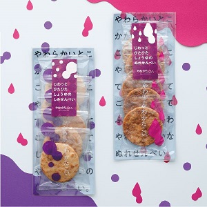 ぬれせんべい、しみせんべいの専門ブランド『やわかたこい。』が登場。